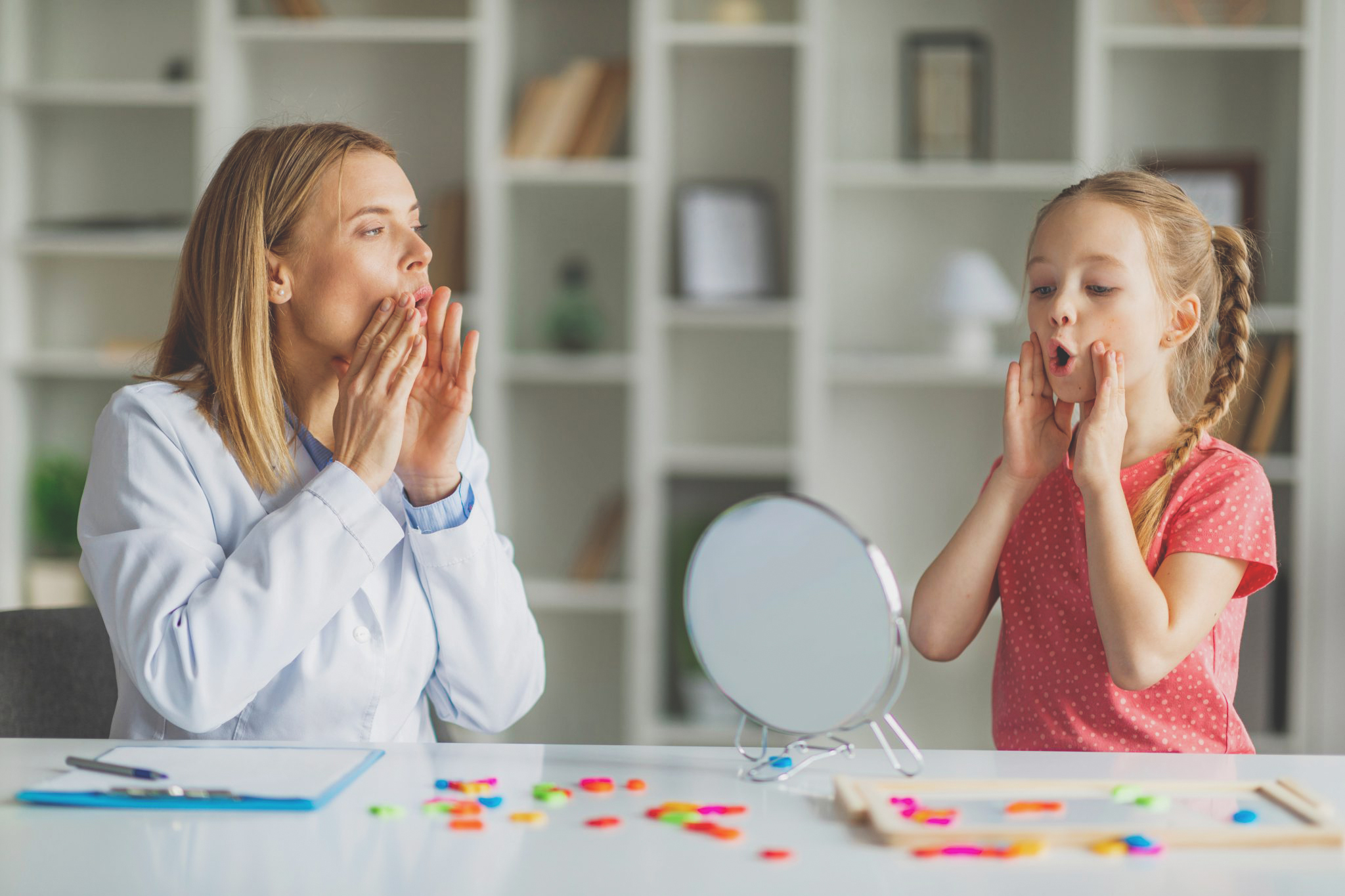 Entre los motivos de consulta más habituales se encuentran los retrasos en el lenguaje, las dislalias —errores en la pronunciación de sonidos—, la disfonía (ronquera persistente) y los trastornos de la fluidez, como la tartamudez. También son frecuentes los problemas asociados a la respiración bucal y a la deglución atípica, que pueden incidir en el desarrollo facial, la postura y la calidad de vida.