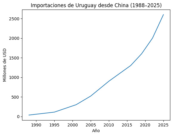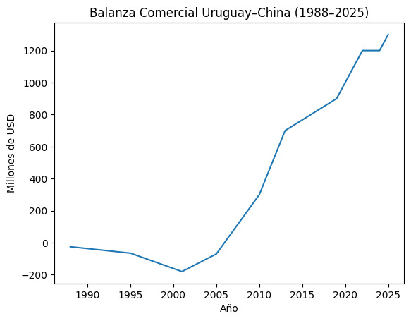 China–Uruguay (1988–2025): de déficit comercial a superávit estructural
