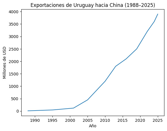Durante esta etapa, las exportaciones uruguayas hacia China crecieron exponencialmente. A principios de los 2000, China se consolidó como uno de los principales destinos de soja y carne uruguaya, desplazando gradualmente a mercados tradicionales como Brasil y la Unión Europea.