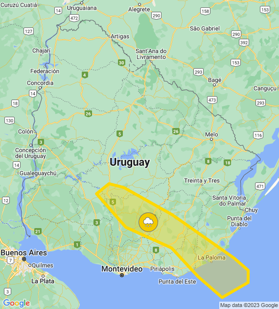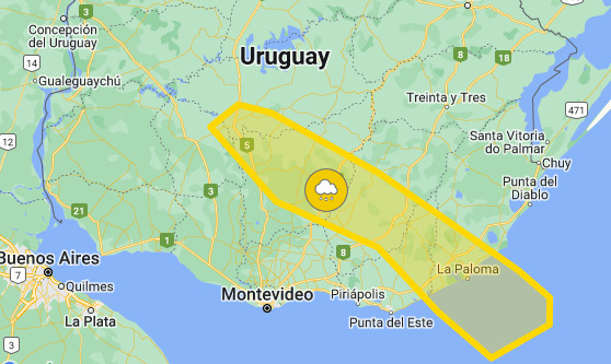 Los principales departamentos que serán afectados por esta alerta serán: Durazno, Lavallejas, Maldonado y Rocha.