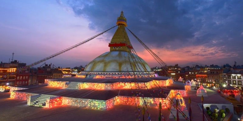 Swayambhunath. Es una estupa (edificio religioso budista) ubicada en una colina a tres kilómetros de Katmandú, donde está el monumento budista más viejo del valle.
