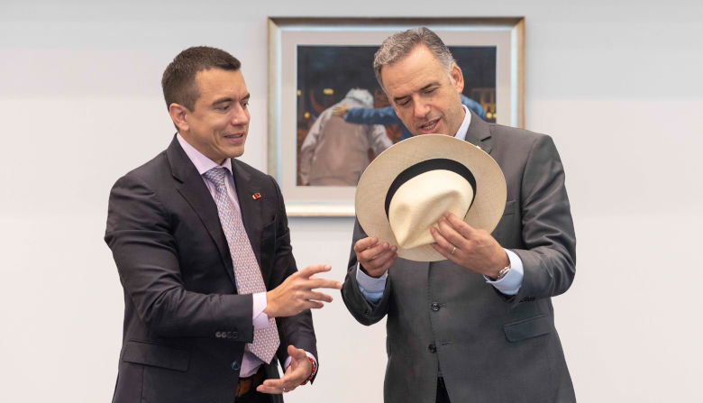 El presidente Noboa, le regaló a Yamandú Orsi un sombrero Panamá