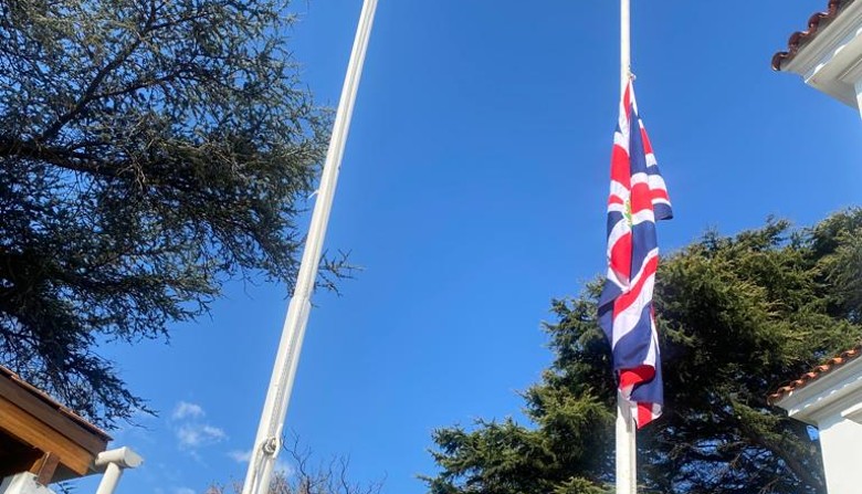 Pabellón británico con homenaje a la reina Isabel II