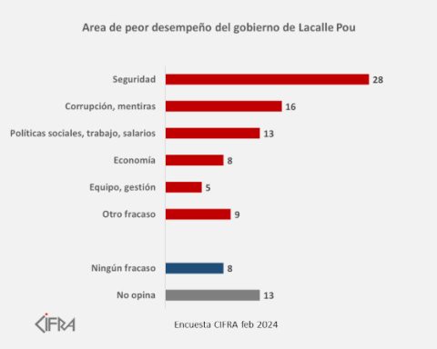 Baja el nivel de aprobación de Lacalle Pou que se ubica en un 43%, y la desaprobación en 39% El área de peor desempeño, según más de un cuarto del electorado, es la gestión de la seguridad pública y la corrupción. 6 de marzo de 2024