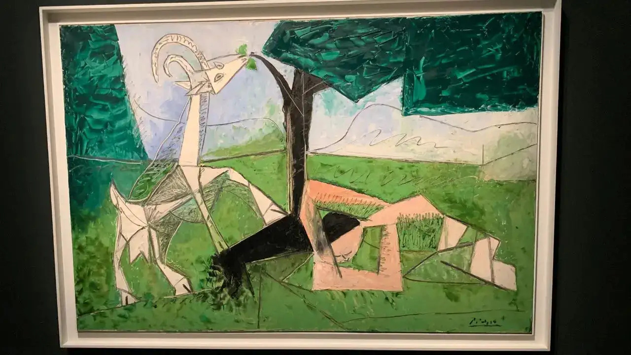 Entrar y ser recibido por Le Printtemps (Primavera) de Picasso, una alegre obra de marzo de 1956, tras disfrutar de un zumo de frutas en una copa flauta junto a un grupo artístico francés («Podríamos estar en cualquier lugar», dice un escritor letón-estadounidense, mirando a su alrededor, en un momento festivo) es realmente asombroso.