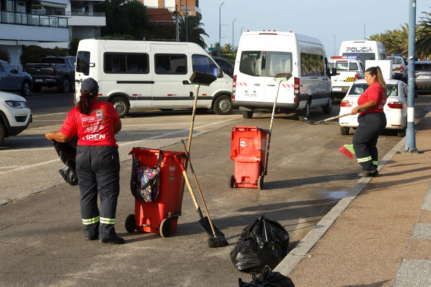 La dirección de gestión ambiental destacó la importancia de contar con apoyo de la policía, sin lo cual la tarea habría sido difícil de llevar adelante dado que a primera hora aun permanecía la rambla y el puerto con un alto número de personas que continuaban los festejos.