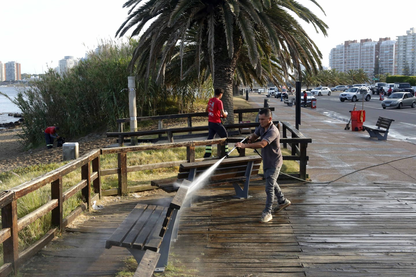 Cuadrillas de la intendencia trabajaron desde la madrugada en un operativo limpieza que dejó la costa en condiciones en pocas horas.