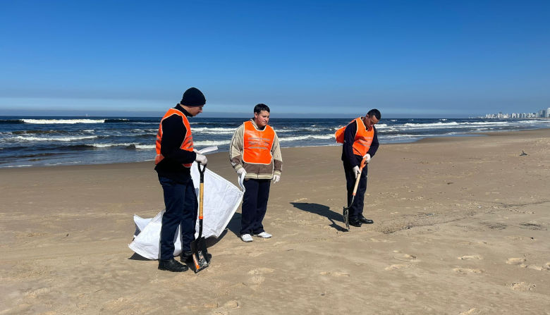 El Centro Coordinador de Emergencias (Cecoed) Maldonado coordina tareas de limpieza en zonas afectadas por hidrocarburos en la costa del departamento.