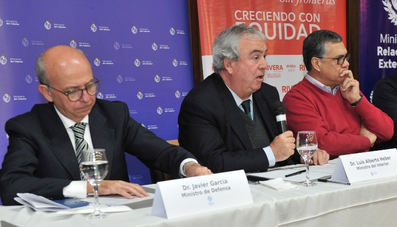 Autoridades de Uruguay y Brasil participaron, este martes 30, en la apertura del Encuentro Binacional sobre Seguridad Pública, en la ciudad de Rivera. Los ministros Luis Alberto Heber(Interior), Javier García (Defensa Nacional) y Francisco Bustillo (Relaciones Exteriores) coincidieron en la necesidad de establecer un trabajo conjunto con el país vecino para mitigar los efectos del crimen organizado y el narcotráfico en las ciudades fronterizas.